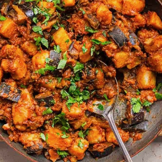 - Add the aubergine cubes and cook for another 10 minutes, until both are tender and lightly golden.